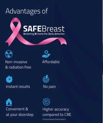 SAFEBreast uses a handheld device to detect breast lumps without compression, radiation, or discomfort. It’s particularly effective for younger women and offers the convenience of screening in the privacy of your home.
